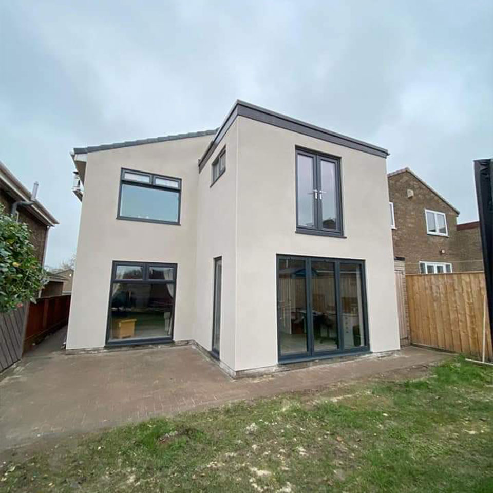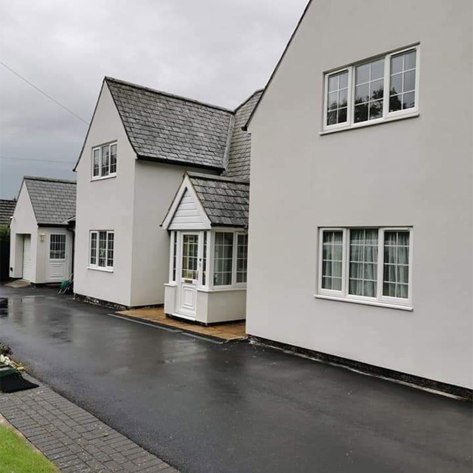 - Through-coloured render which is low maintenance, strong and long-lasting